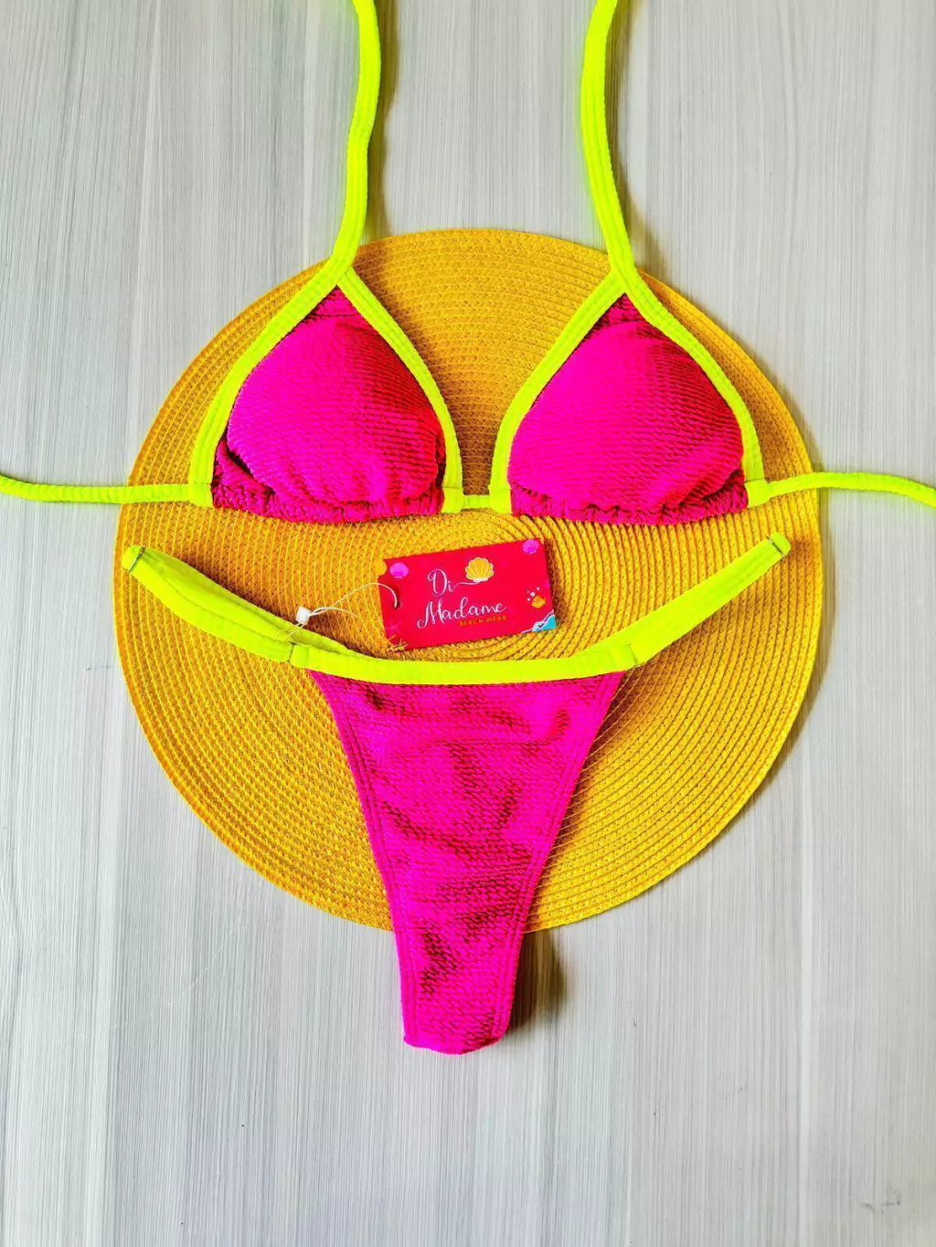Biquíni próprio para bronze, proporcionando uma marca perfeita que imita o bronze de fita fininha.