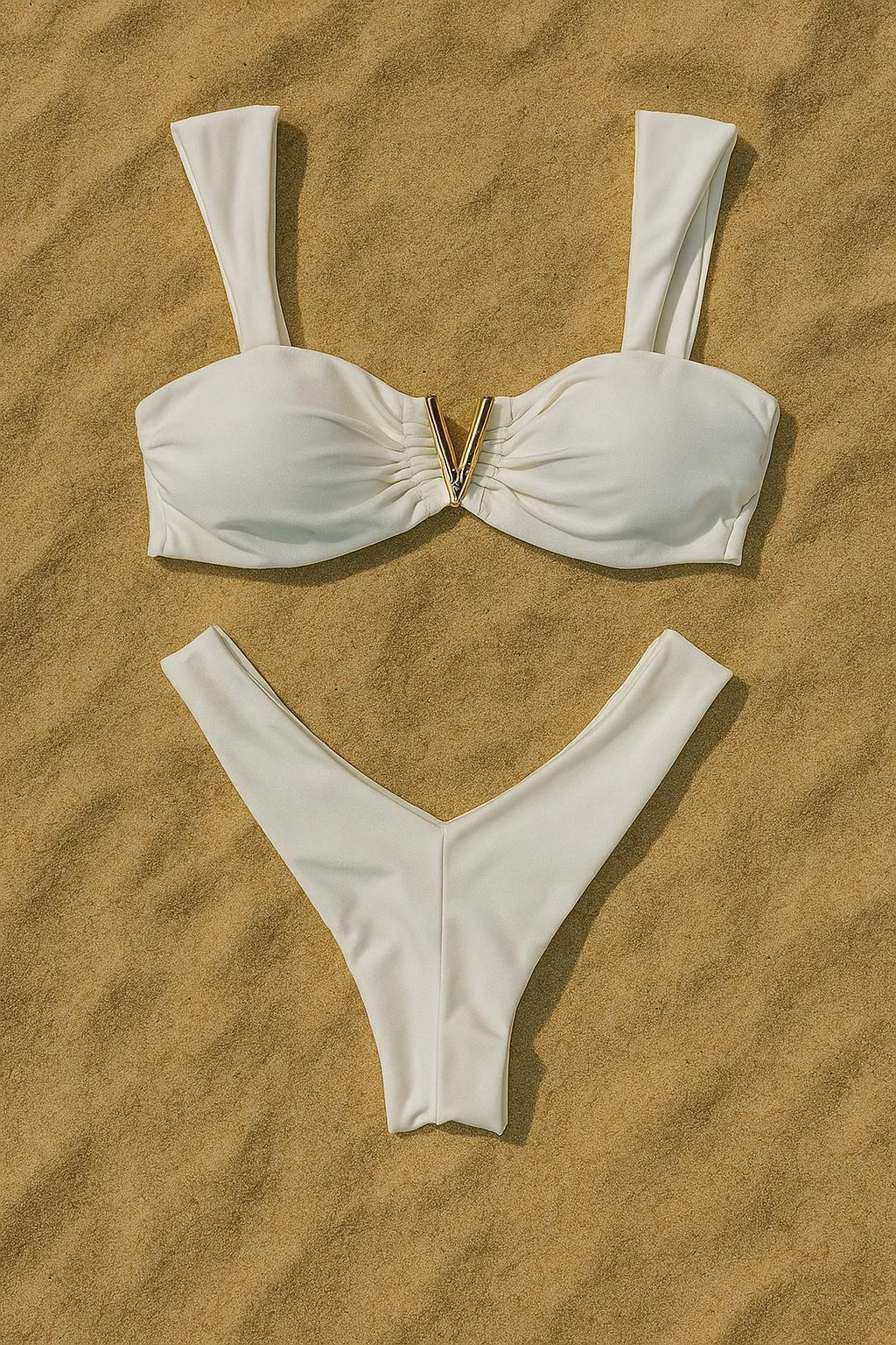 Biquíni Asa Delta, top Meia Taça, com bojo removível e amarração nas costas.