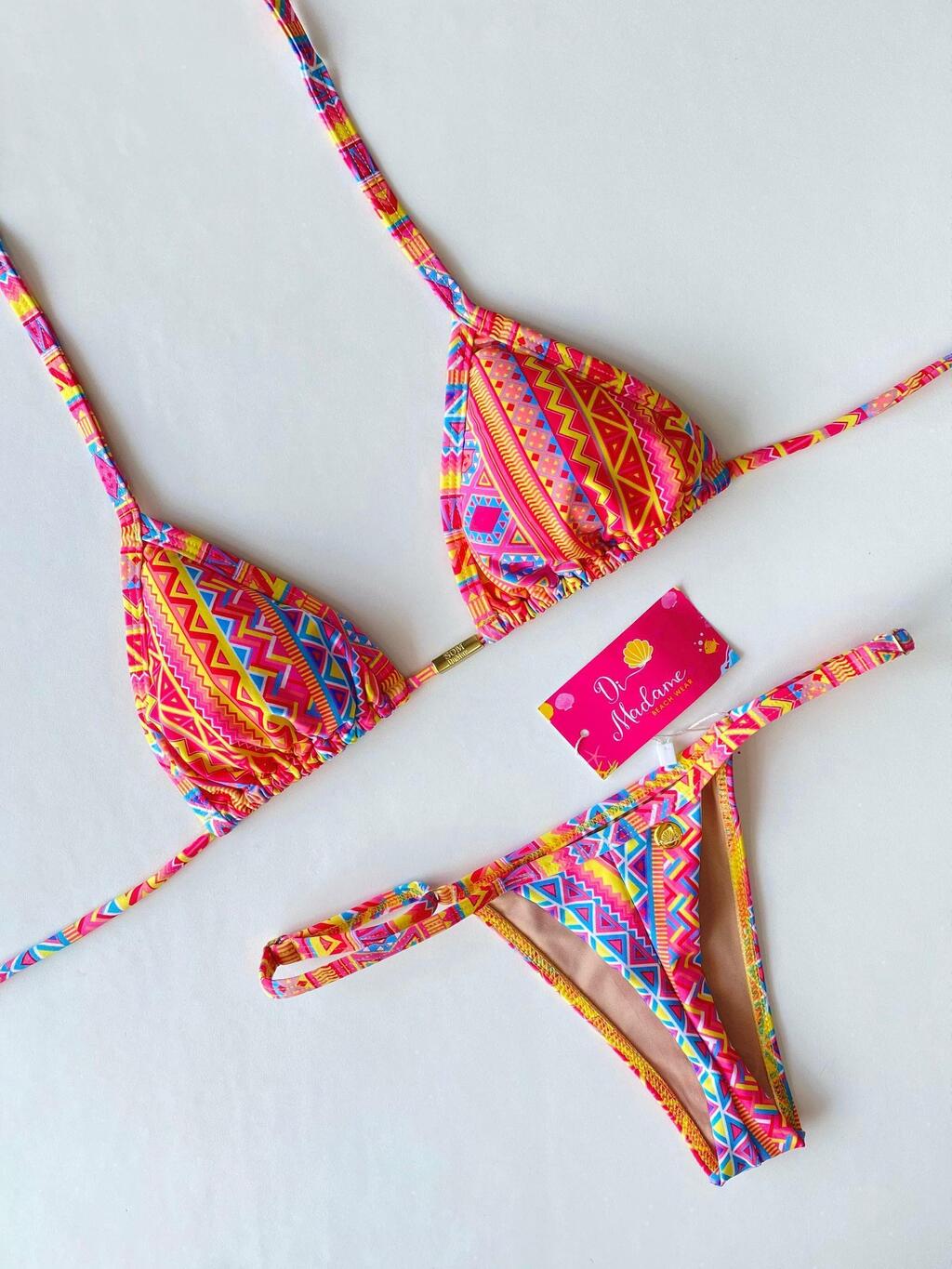 O biquíni foi pensado para oferecer conforto, versatilidade e estilo: a calcinha tem amarração lateral que se ajusta perfeitamente ao corpo, enquanto o top com bojo removível valoriza o busto na medida certa — você escolhe como se sentir mais à vontade.