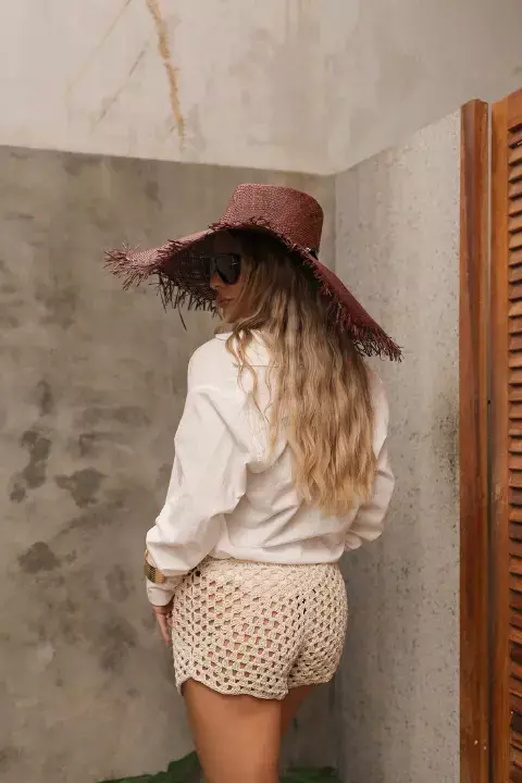 Autêntica e moderna, o short de crochê off-white é a peça ideal para quem busca um visual que mistura o artesanal com o sofisticado.